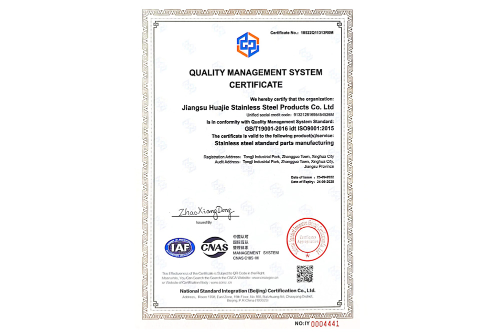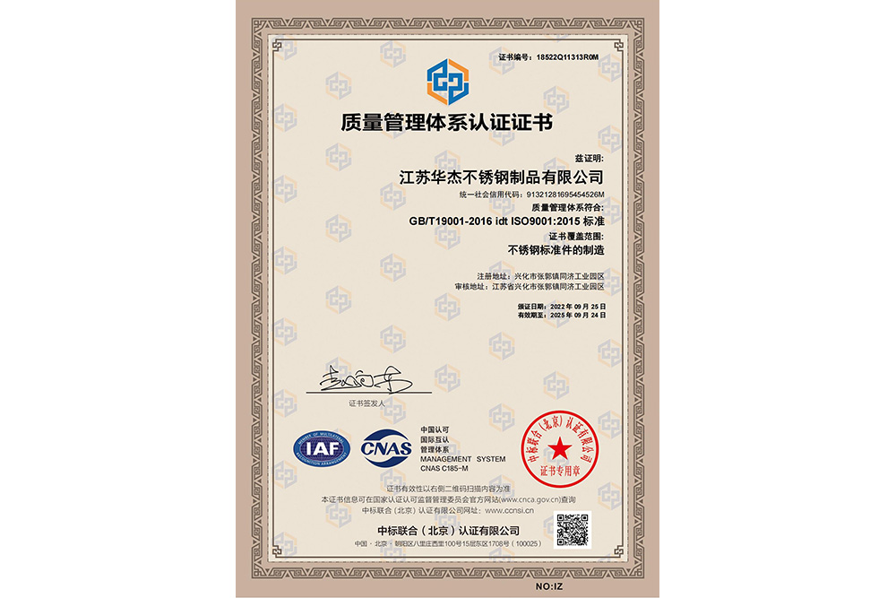 产品执行等级标准包括国家标准(GB)、德标(DIN)、美标(ANSI/ASME)、日标(JIS),已通过ISO9001国际质量管理体系认证。